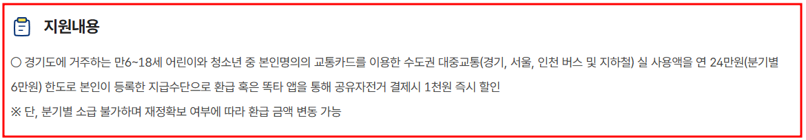 경기도 어린이·청소년 교통비 지원 정책