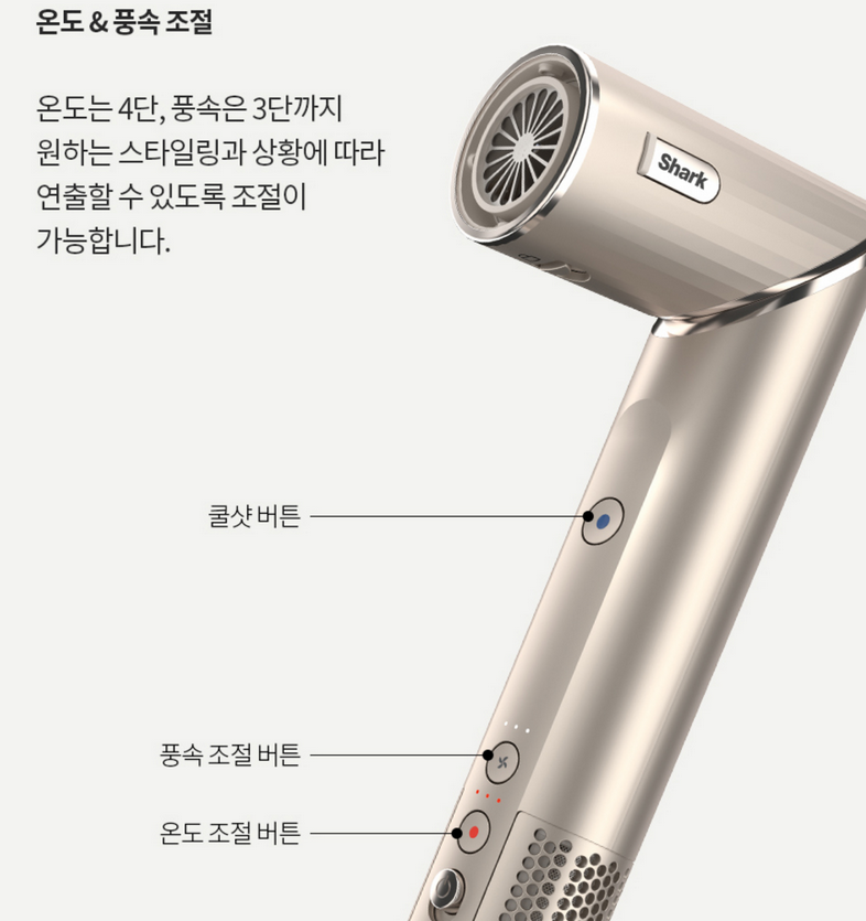 - Shark는 AI 열 조절 시스템을 활용하여 모발 손상을 최소화하면서도 신속한 건조가 가능합니다.