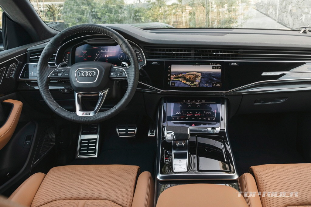 더 뉴 아우디 RS Q8은 최신 MMI 터치 시스템과 풀 디지털 버추얼 콕핏 플러스가 적용되어 직관적인 조작이 가능합니다. 12.3인치 디지털 클러스터와 10.1인치 및 8.6인치 듀얼 터치스크린이 포함된 센터 디스플레이는 미래지향적인 실내 분위기를 조성합니다.