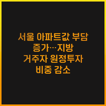 서울 아파트값 부담 증가… 지방 거주자 원정투자 비중 감소