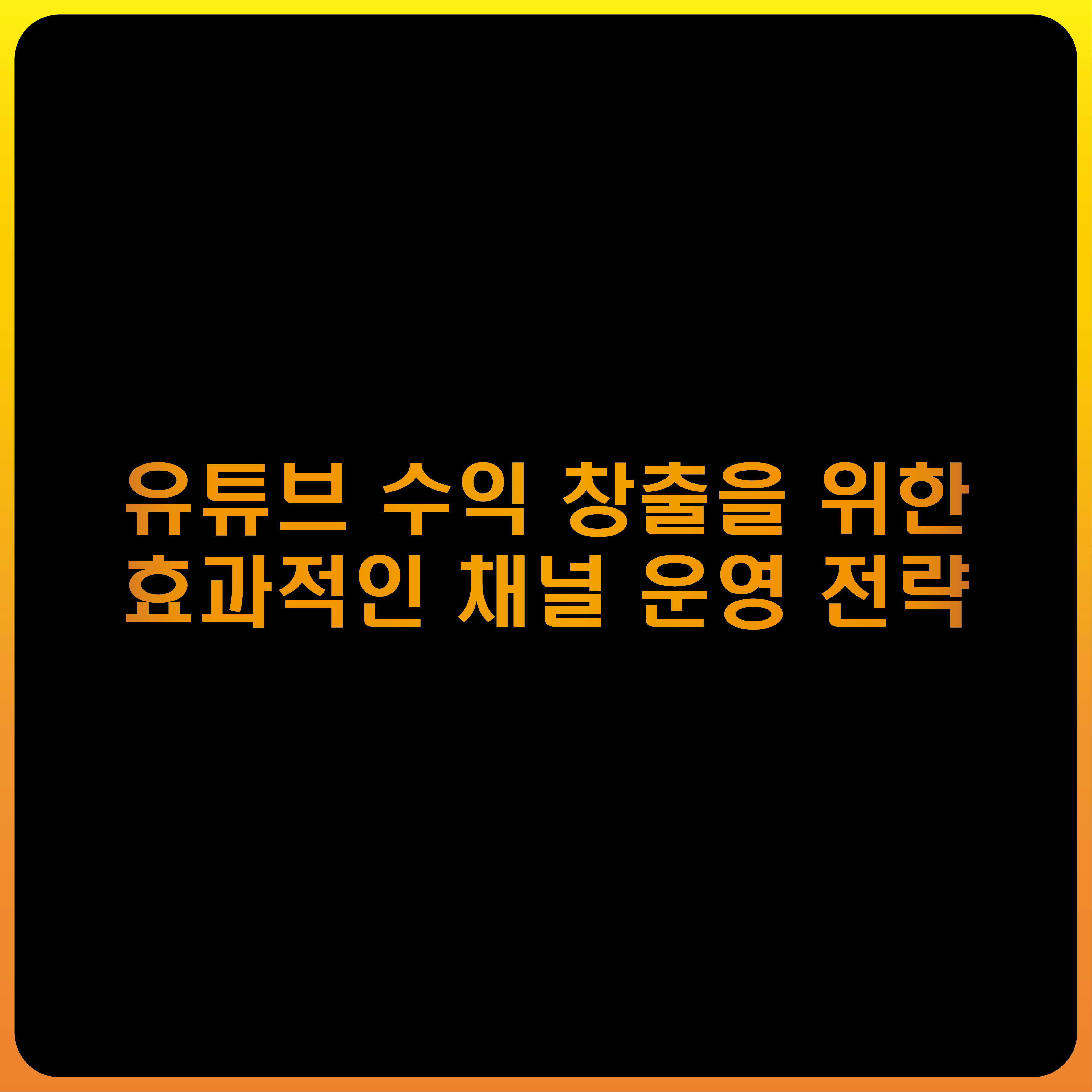 유튜브 수익 창출을 위한 효과적인 채널 운영 전략