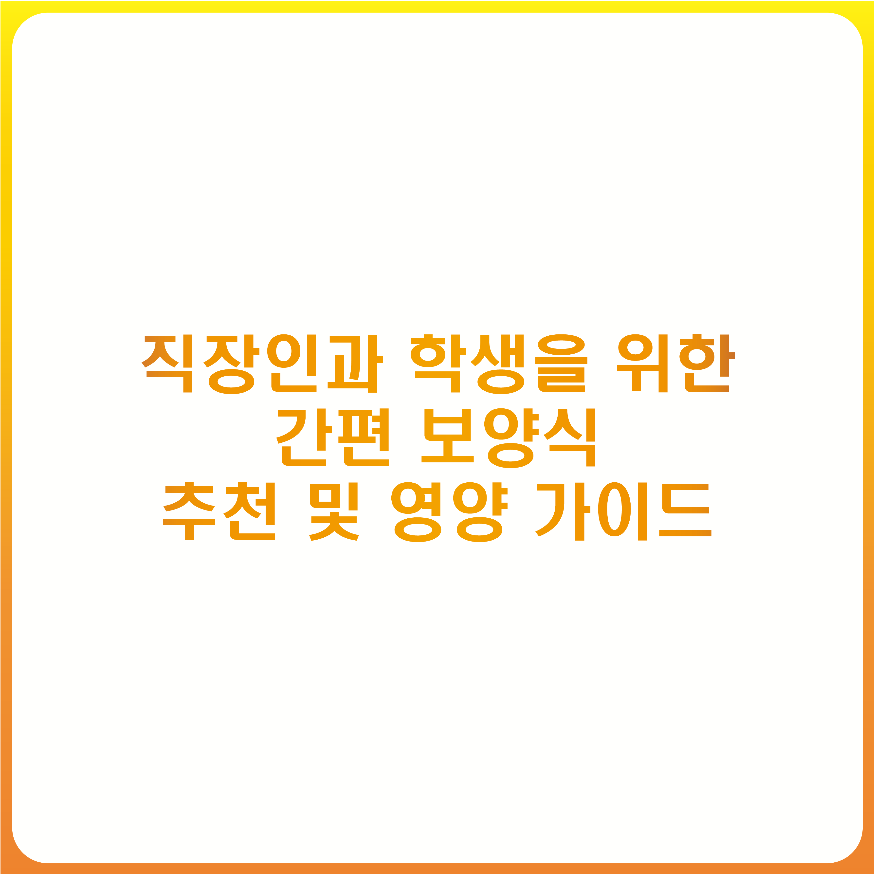 직장인과 학생들은 바쁜 일정 속에서도 건강을 유지하기 위해 간편한 보양식을 선택해야 합니다. 단백질, 비타민, 미네랄이 풍부한 식단을 구성하면, 피로를 줄이고 에너지를 보충할 수 있습니다.