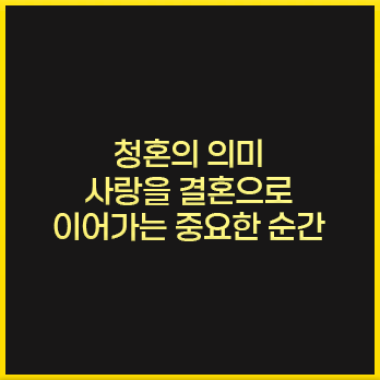 청혼은 단순한 결혼 제안을 넘어서, 사랑하는 사람에게 자신이 평생 함께하고 싶다는 감정을 표현하는 진심 어린 고백입니다. 이는 두 사람의 관계가 한 단계 더 깊어지는 순간이기도 합니다.